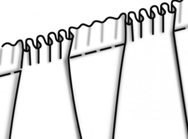 Die Zugbänder gibt es in 50 mm hoch, wir bieten diese in weiß oder transparent. Bitte beachten: Bei einer Zweierfalte wird eine Stoffzugabe 1:2 benötigt, bei einer Dreierfalte 1:2,5 und einer Viererfalte 1:3.