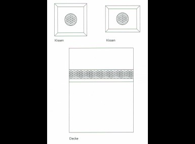 Die Kissen werden mit zentrierter, runder Stickerei und 5cm Stehsaum gefertigt, die Decke erhält ihre Eleganz durch eine gestickte Borde. Das Stickschema für die Kopfkissen- und Bettdeckenbezüge von "Eternal Flower" finden Sie in der Bildergalerie.