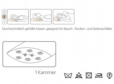Stützkraft: mittel (Mittelweiches Kissen), besonders geeignet für Bauch-, Rücken- und Seitenschläfer